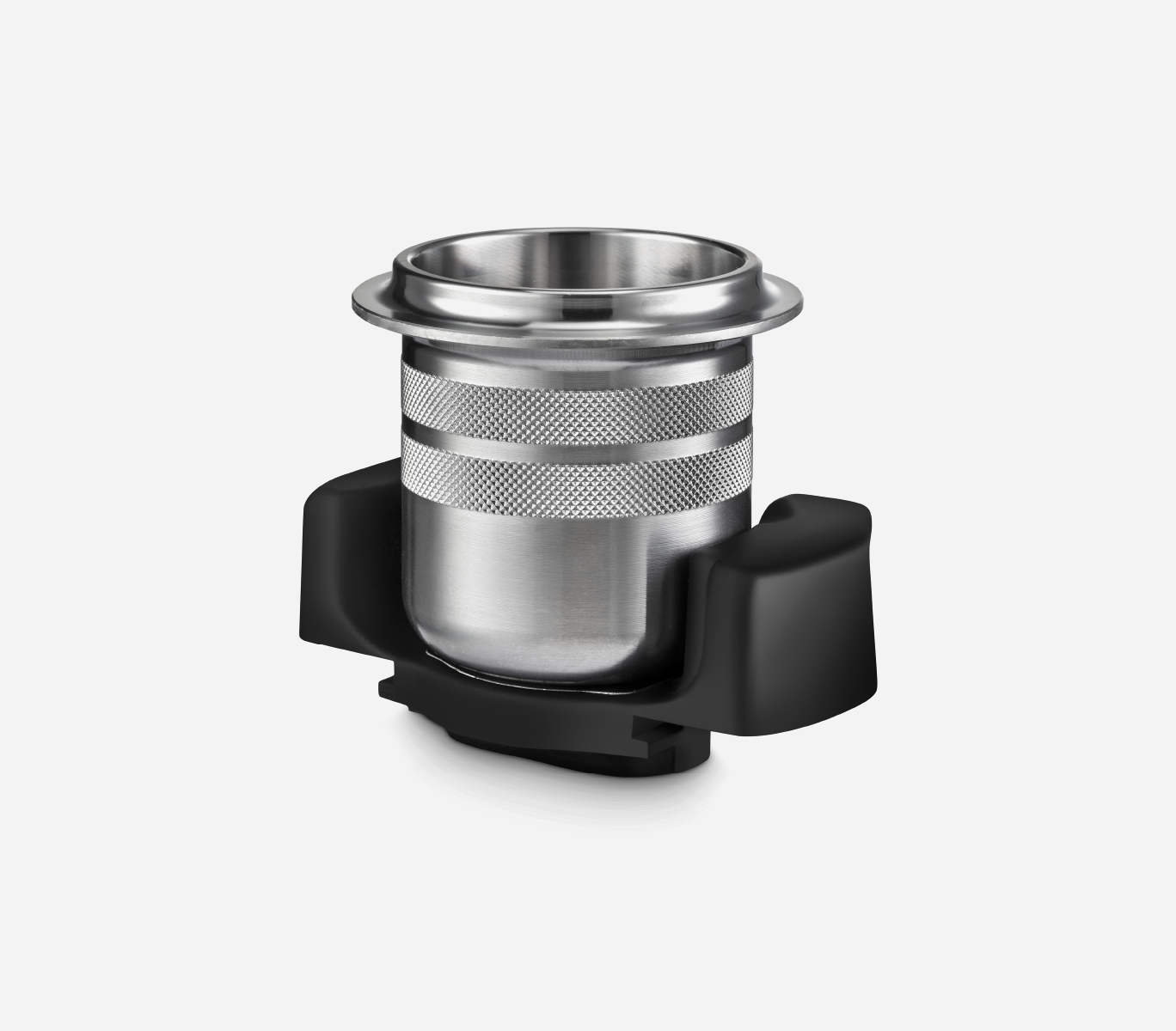Adjustable Portafilter Holder. Consistently center the flow of grinds in the basket.